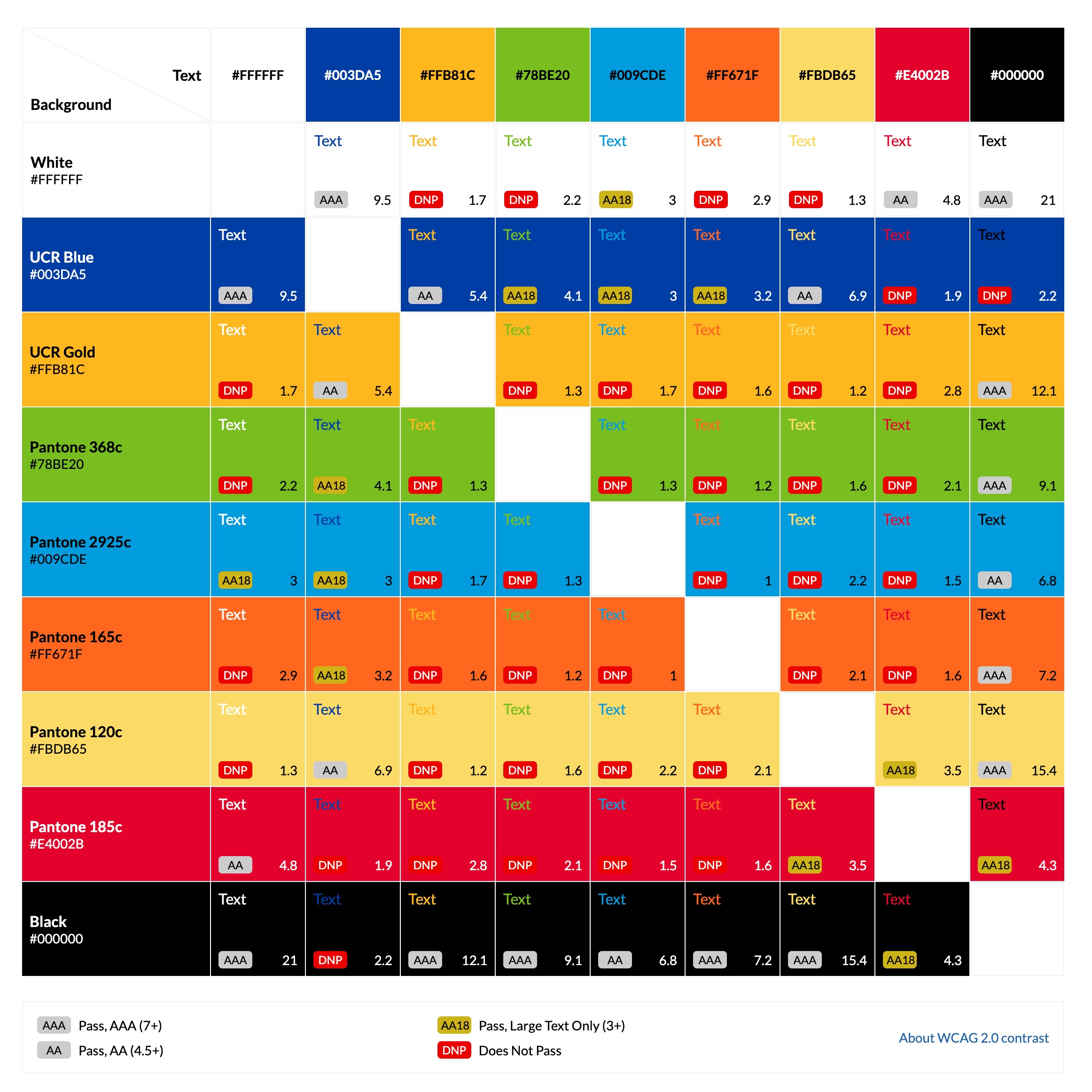 UCR Brand Color Accessibility Contrast Grid